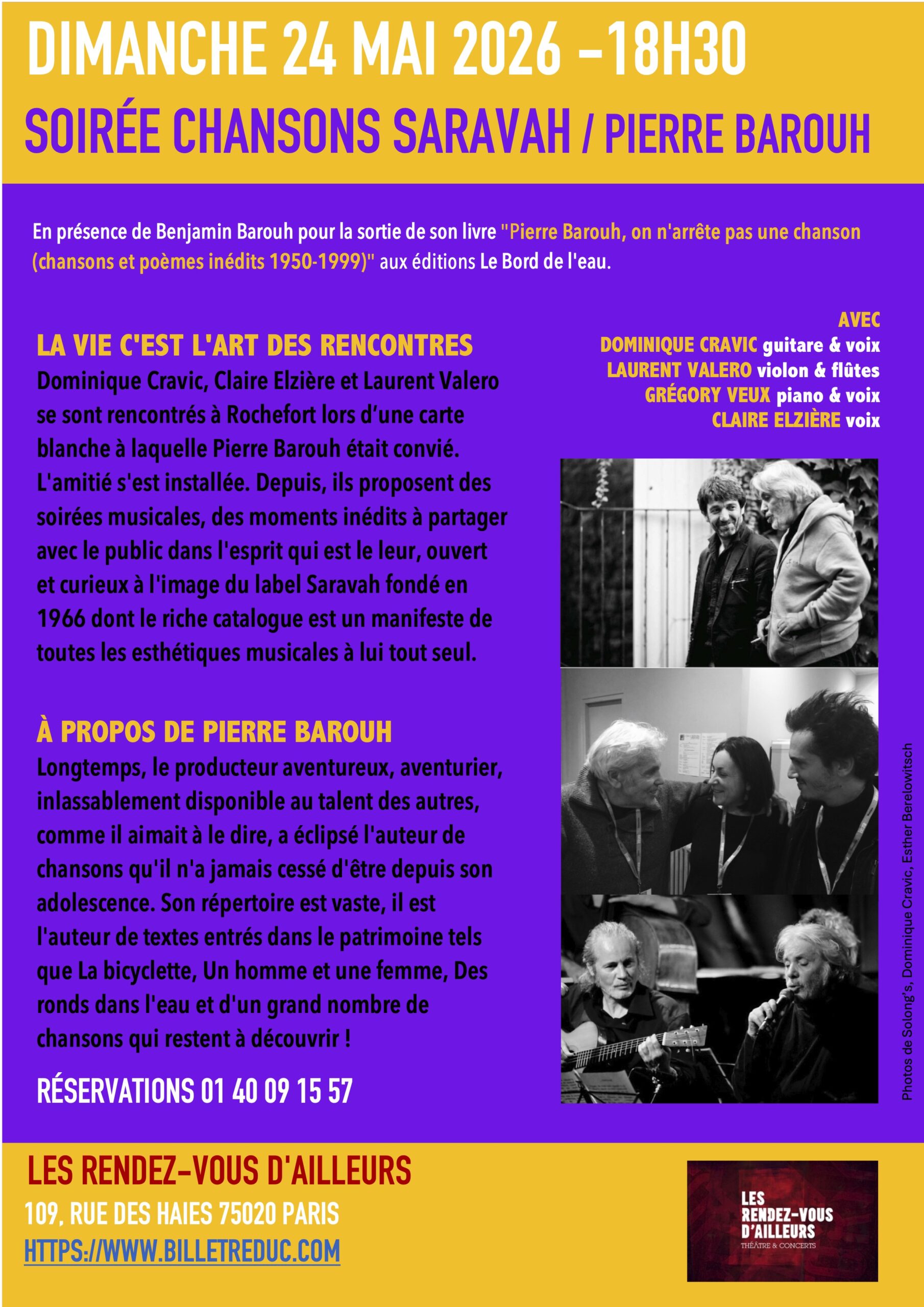 RÉSERVATIONS 01 40 09 15 57